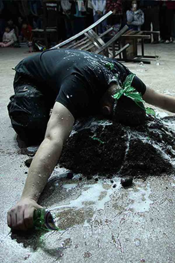 Maurice Blok work is certainly one of the most interesting emergent artists on the Scandinavian scene. Ha sculptor) on an object it was only natural for him to bring this tis work is very physical and yet poetic. Having used tools (as o his action art work too. Although he works as a perforamnce artist, he consider himself a sculptor. Constructing and deconstructing whilst having some kind of interaction with the audience (or not). Naturally, his performance art is ordered in a chronological manner, yet the viewer is not aware of this while encountering it. The actions he do do are often untitled. Since a name can draw the attention away from what the piece is (or maybe could be) – just itself.